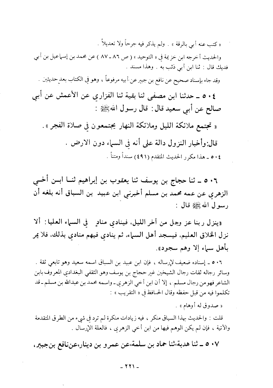 504- هذا مكرر الحديث المتقدم 491 سندا ومتنا.