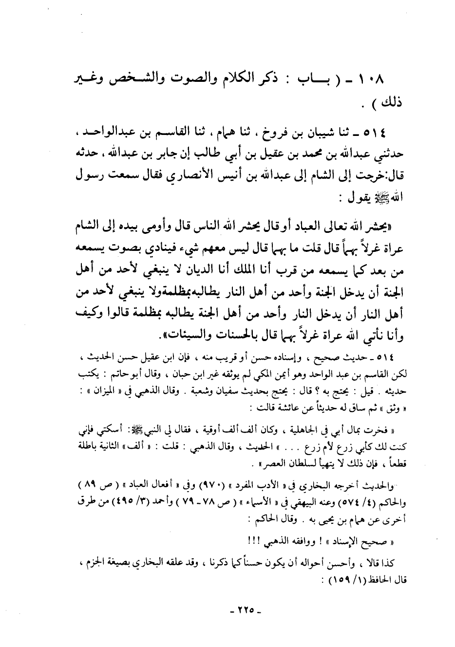 108- "بَابُ: ذِكْرِ الْكَلامِ وَالصَّوْتِ وَالشَّخْصِ وَغَيْرِ ذَلِكَ".