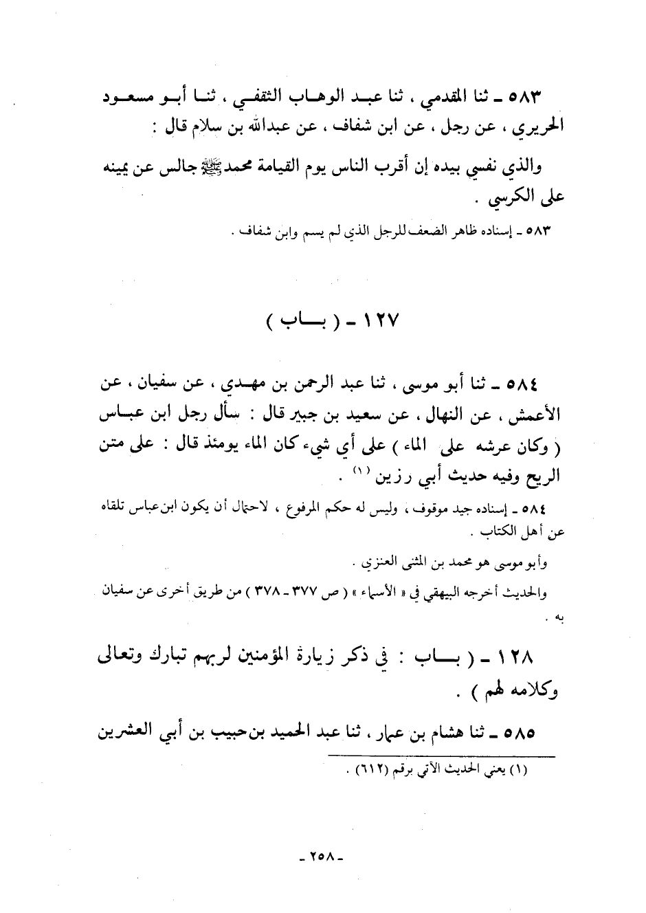 528- "بَابٌ: فِي ذِكْرِ زِيَارَةِ الْمُؤْمِنِينَ لِرَبِّهِمْ تَبَارَكَ وَتَعَالَى وَكَلَامِهِ لَهُمْ".