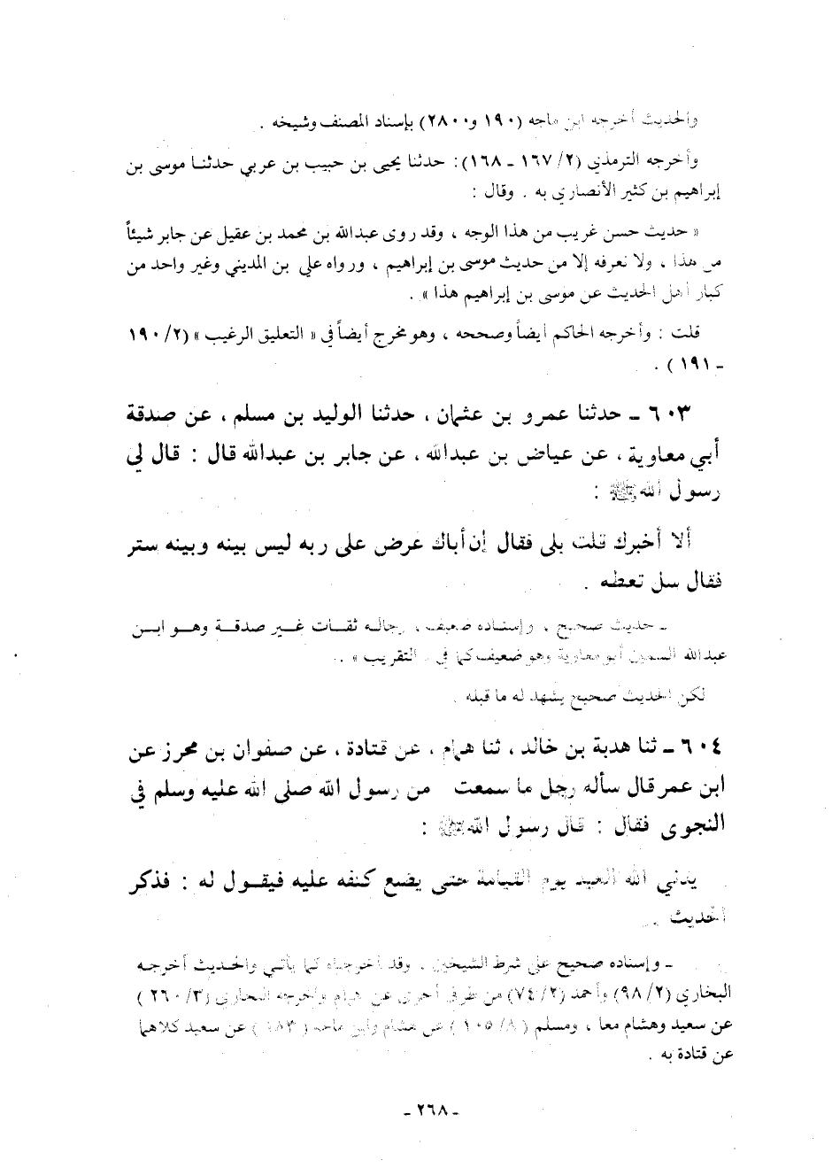 604 - ثنا هُدْبَةُ بْنُ خَالِدٍ ثنا هَمَّامٌ عَنْ قَتَادَةَ عَنْ صَفْوَانَ بْنِ مُحْرِزٍ عَنِ ابْنِ عُمَرَ قَالَ سَأَلَهُ رَجُلٌ مَا سَمِعْتَ مِنْ رَسُولِ اللَّهِ صَلَّى اللَّهُ عَلَيْهِ وَسَلَّمَ فِي النَّجْوَى فَقَالَ: قَالَ رَسُولُ اللَّهِ صَلَّى اللَّهُ عَلَيْهِ وَسَلَّمَ: