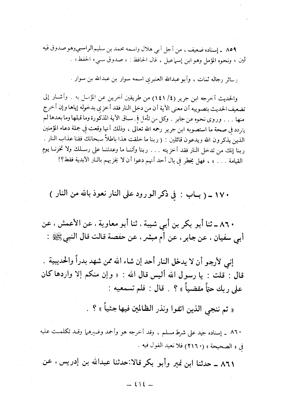 170- بَابٌ فِي ذِكْرِ الْوُرُودِ عَلَى النَّارِ نَعُوذُ بِاللهِ مِنَ النَّارِ:
