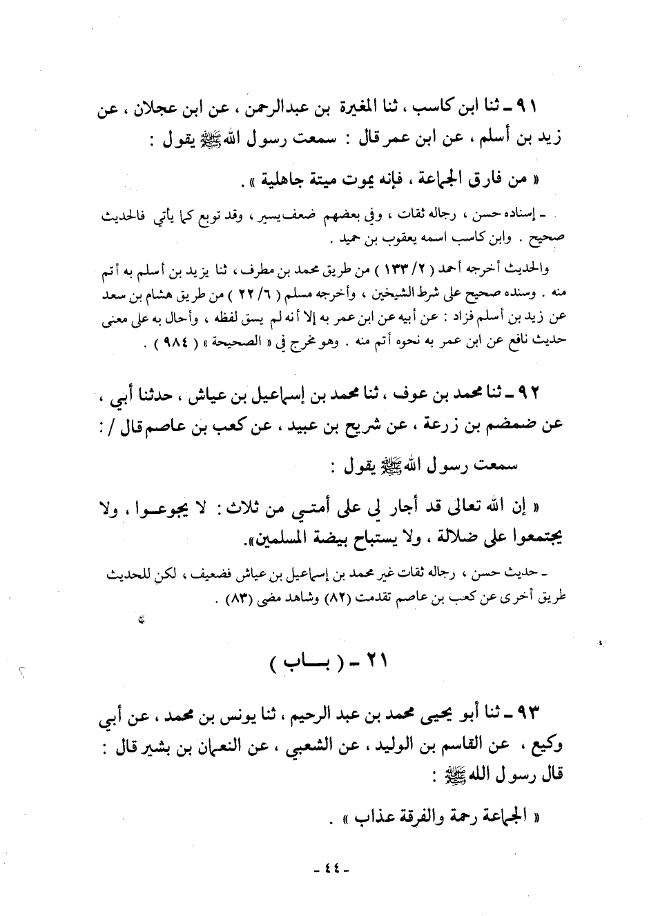 "باب" حديث "الجماعة رحمة والفرقة عذاب"