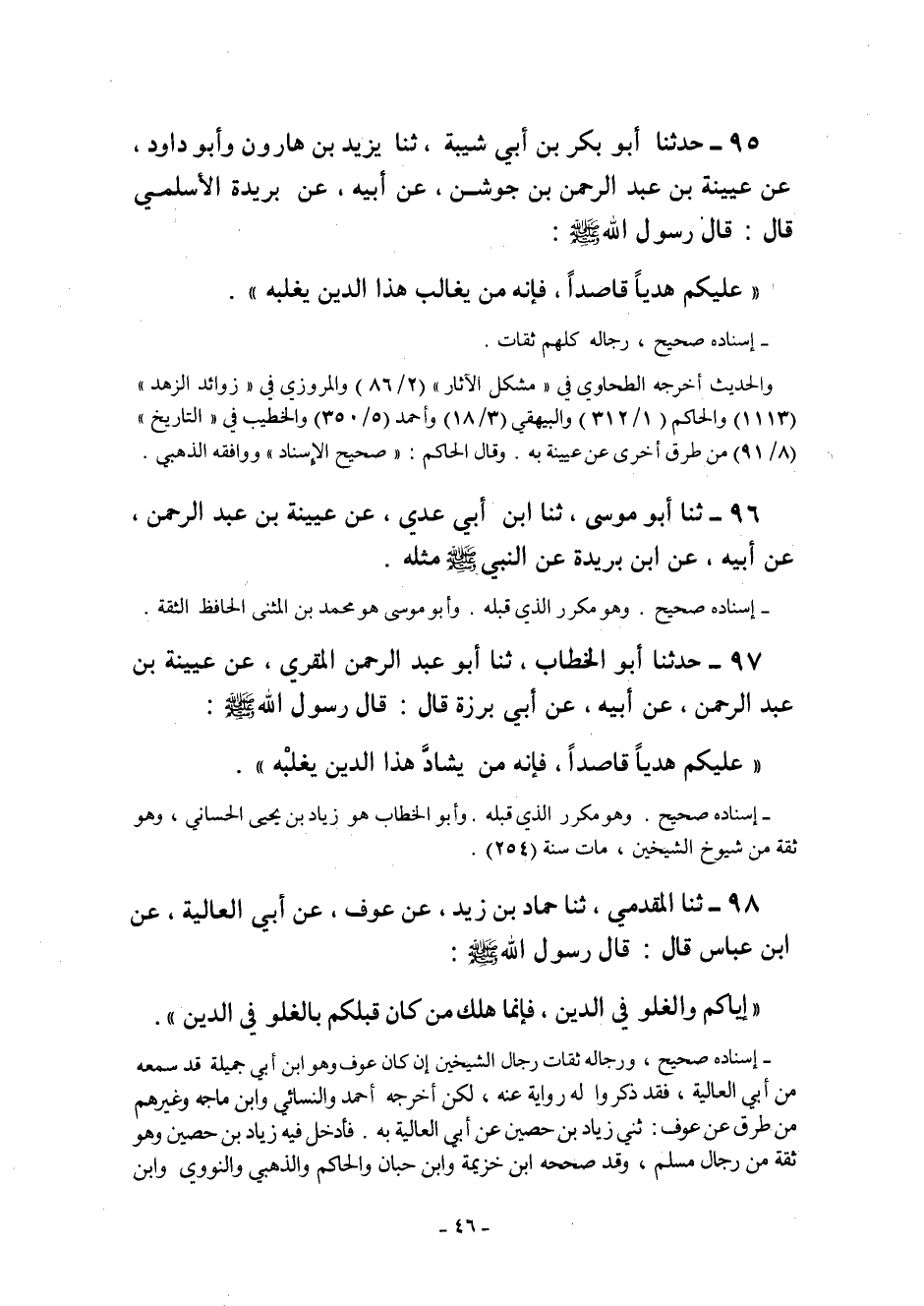 "عَلَيْكُمْ هَدْيًا قَاصِدًا فَإِنَّهُ مَنْ يُشَادَّ هَذَا الدِّينَ يَغْلِبْهُ".