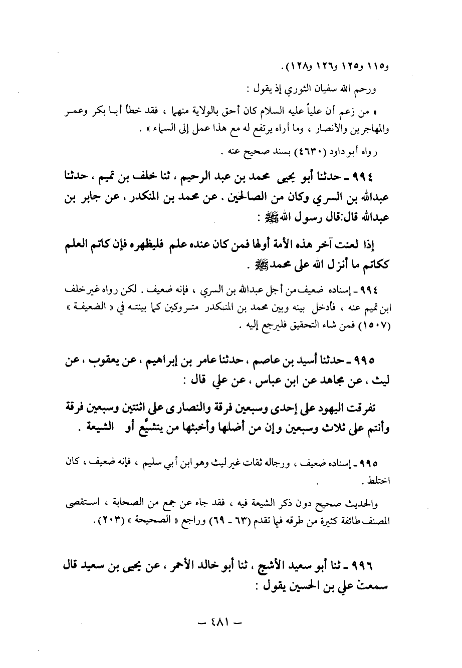 996 - ثنا أَبُو سَعِيدٍ الأَشَجُّ ثنا أَبُو خَالِدٍ الأَحْمَرُ عَنْ يَحْيَى بْنِ سَعِيدٍ قَالَ سَمِعْتُ عَلِيَّ بْنَ الْحُسَيْنِ يَقُولُ: