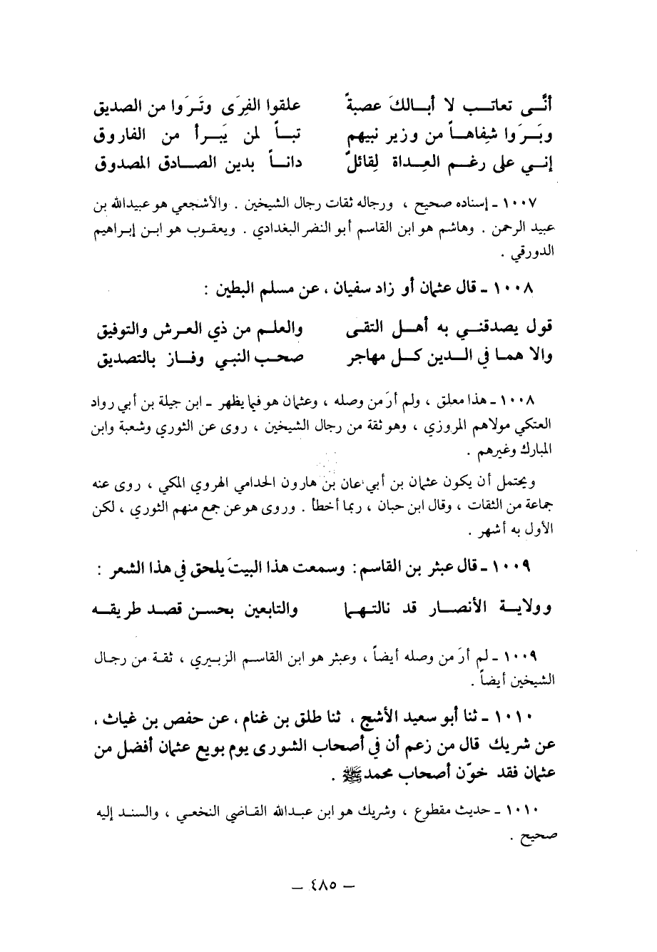 1010 - ثنا أَبُو السَّعِيدِ الأَشَجُّ ثنا طَلْقُ بْنُ غَنَّامٍ عَنْ حَفْصِ بْنِ غِيَاثٍ عَنْ شَرِيكٍ قَالَ: من زعم أن من أَصْحَابِ الشُّورَى يَوْمَ بُويِعَ عُثْمَانُ أَفْضَلُ مِنْ عُثْمَانَ فَقَدْ خَوَّنَ أَصْحَابَ مُحَمَّدٍ صَلَّى اللَّهُ عَلَيْهِ وسلم.