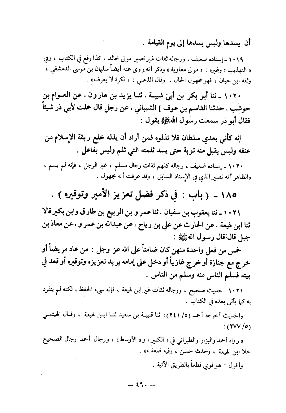 185- باب: في ذكر فضل تعزيز الأَمِيرِ وَتَوْقِيرِهِ: