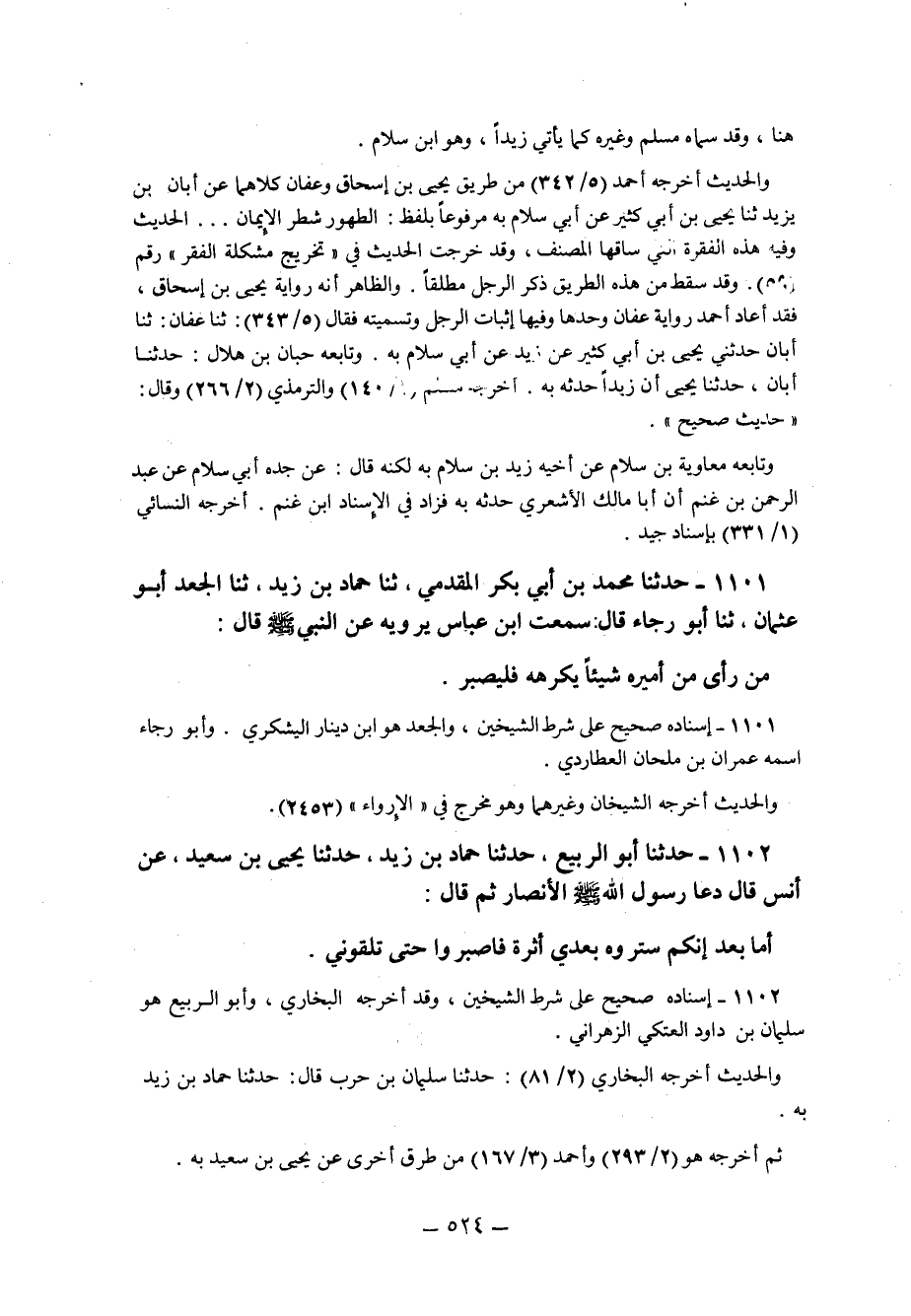 1101 - حَدَّثَنَا مُحَمَّدُ بْنُ أَبِي بَكْرٍ الْمُقَدَّمِيُّ ثنا حَمَّادُ بْنُ زَيْدٍ ثنا الْجَعْدُ أَبُو عُثْمَانَ ثنا أَبُو رَجَاءٍ قَالَ: سَمِعْتُ ابْنَ عَبَّاسٍ يَرْوِيهِ عَنِ النَّبِيِّ صَلَّى اللَّهُ عَلَيْهِ وَسَلَّمَ قَالَ: