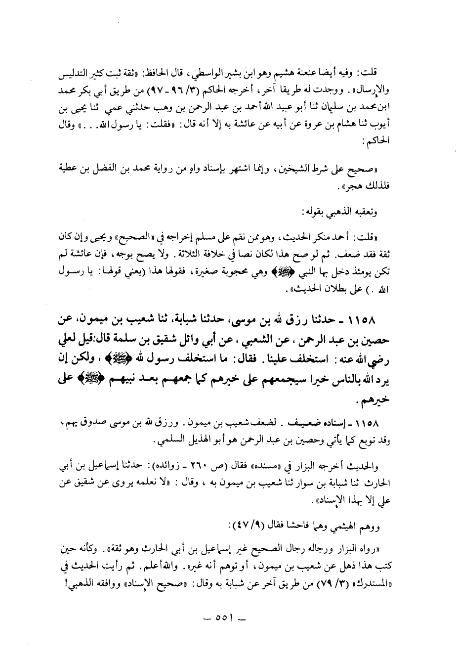 1158- إسناده ضعيف لضعف شعيب بن ميمون ورزق الله بن موسى صدوق يهم وقد توبع كما يأتي وحصين بن عبد الرحمن هو أبو الهذيل السلمي.