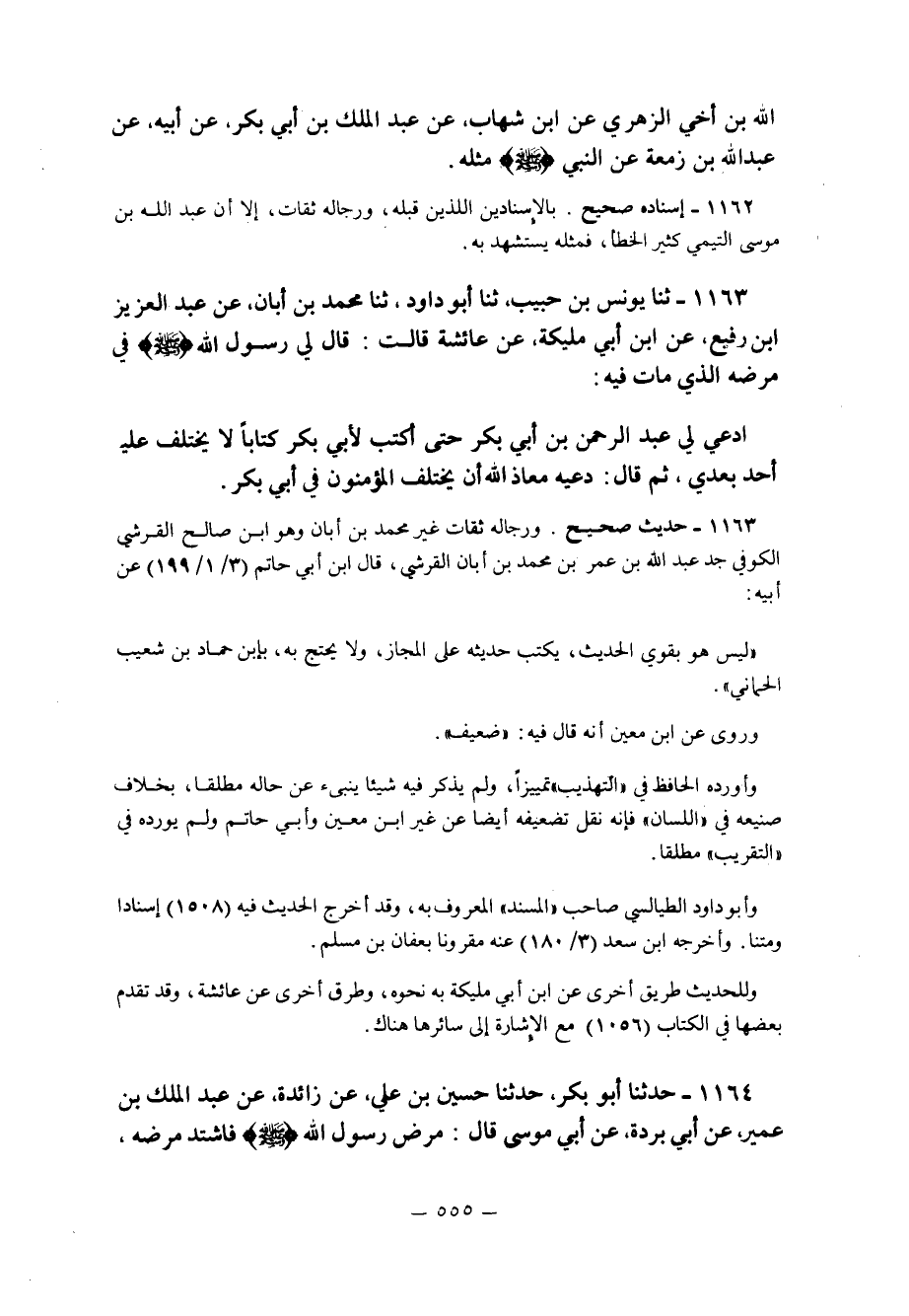 1163- حديث صحيح ورجاله ثقات غير محمد بن أبان وهو ابن صالح القرشي الكوفي جد عبد الله بن عمر بن محمد بن أبان القرشي قال ابن أبي حاتم 3/1/199 عن أبيه: