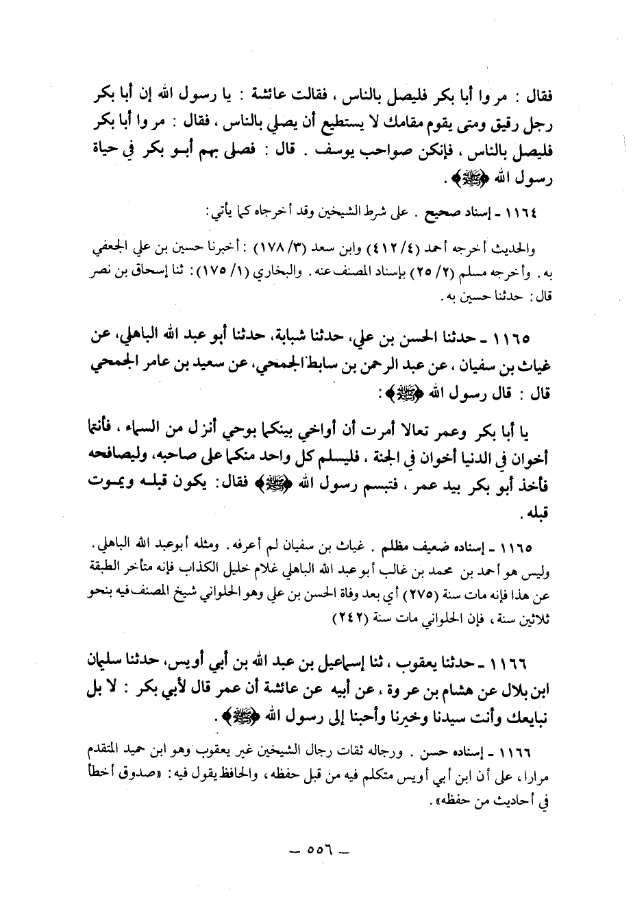 1166- إسناده حسن ورجاله ثقات رجال الشيخين غير يقعوب وهو ابن حميد المتقدم مرارا على أن ابن أبي أويس متكلم فيه من قبل حفظه والحافظ يقول فيه: صدوق أخطأ في أحاديث من حفظه.