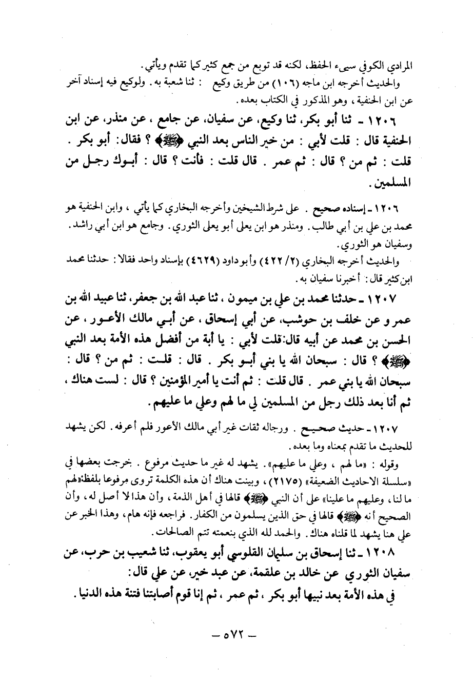 1208 - ثنا إِسْحَاقُ بْنُ سُلَيْمَانَ الْقَلُوسِيُّ أَبُو يَعْقُوبَ ثنا شُعَيْبُ بْنُ حَرْبٍ عَنْ سُفْيَانَ الثَّوْرِيِّ عَنْ خَالِدِ بْنِ عَلْقَمَةَ عَنْ عَبْدِ خَيْرٍ عَنْ عَلِيٍّ قَالَ: