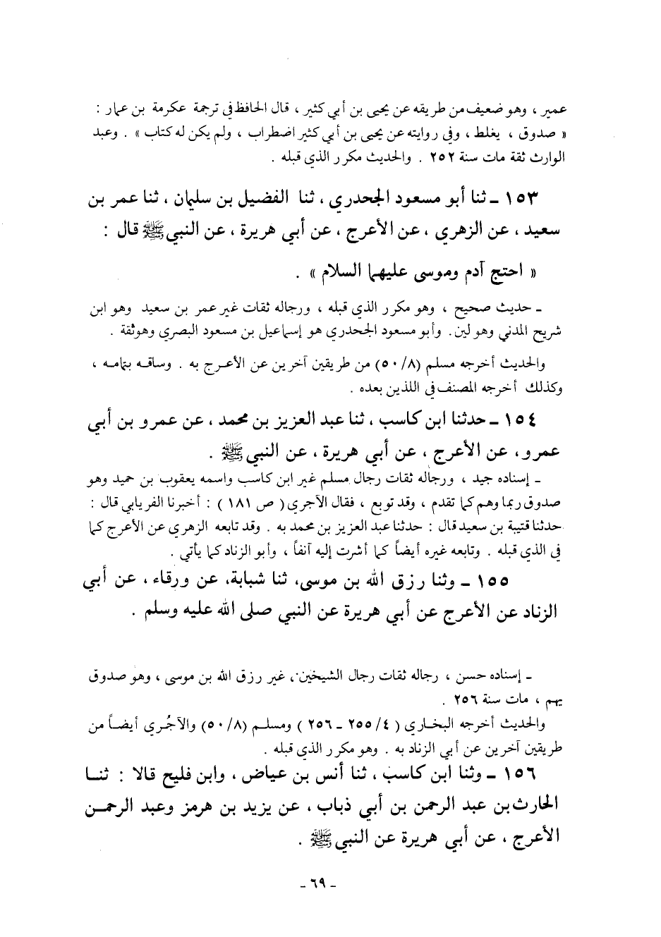 155- وَثنا رِزْقُ اللَّهِ بْنُ مُوسَى ثنا شَبَابَةُ عَنْ وَرْقَاءَ عَنْ أَبِي الزِّنَادِ عَنِ الأَعْرَجِ عَنْ أَبِي هُرَيْرَةَ عَنِ النَّبِيِّ صَلَّى الله عليه وسلم.