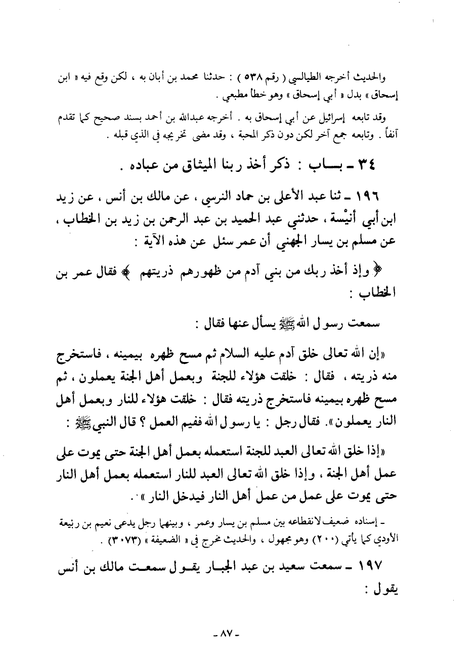 34 – بَابُ: ذِكْرِ أَخْذِ رَبِّنَا الْمِيثَاقَ مِنْ عِبَادِهِ.