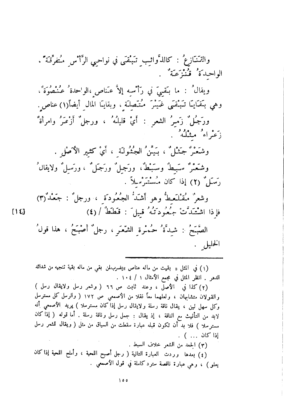 ويقال: ما بقي في رأسه إلا عناص، الواحدة عنصوة، وهي بقايا تبقى غير متصلة، وبقايا المال أيضاً عناصٍ.