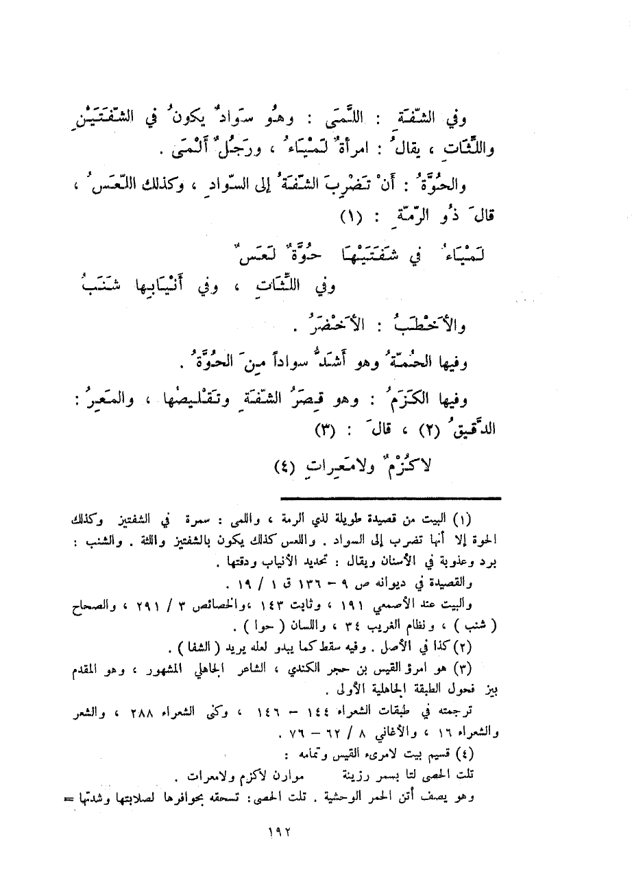 لمياءُ في شفتيها حوّةٌ لعسٌ ... وفي اللّثاتِ، وفي أنيابها شنبُ