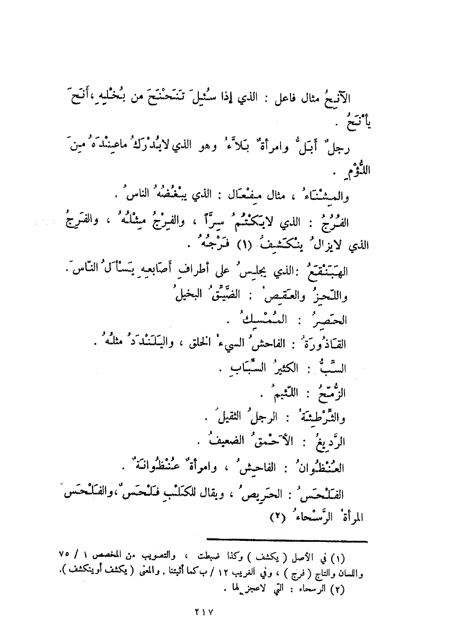 الآنح مثال فاعل: الذي إذا سئل تنحنح من بخله، أنح يأنح.