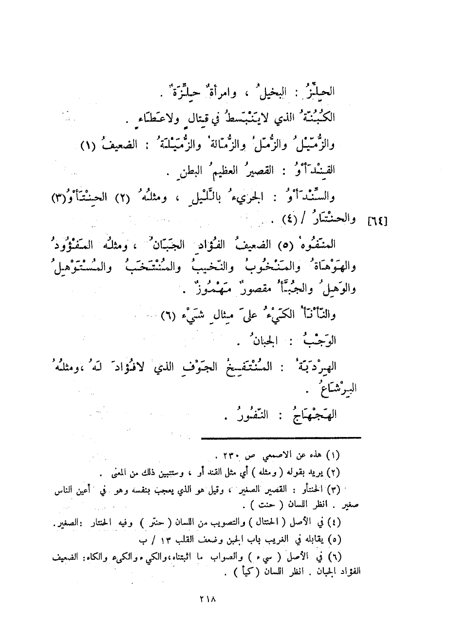 المنفوه الضعيف الفؤاد الجبان، ومثله المفؤود والهوهاة والمنخوب والنخيب والمنتخب والمستوهل والوهل والجبّأ مقصورٌ مهموزٌ.
