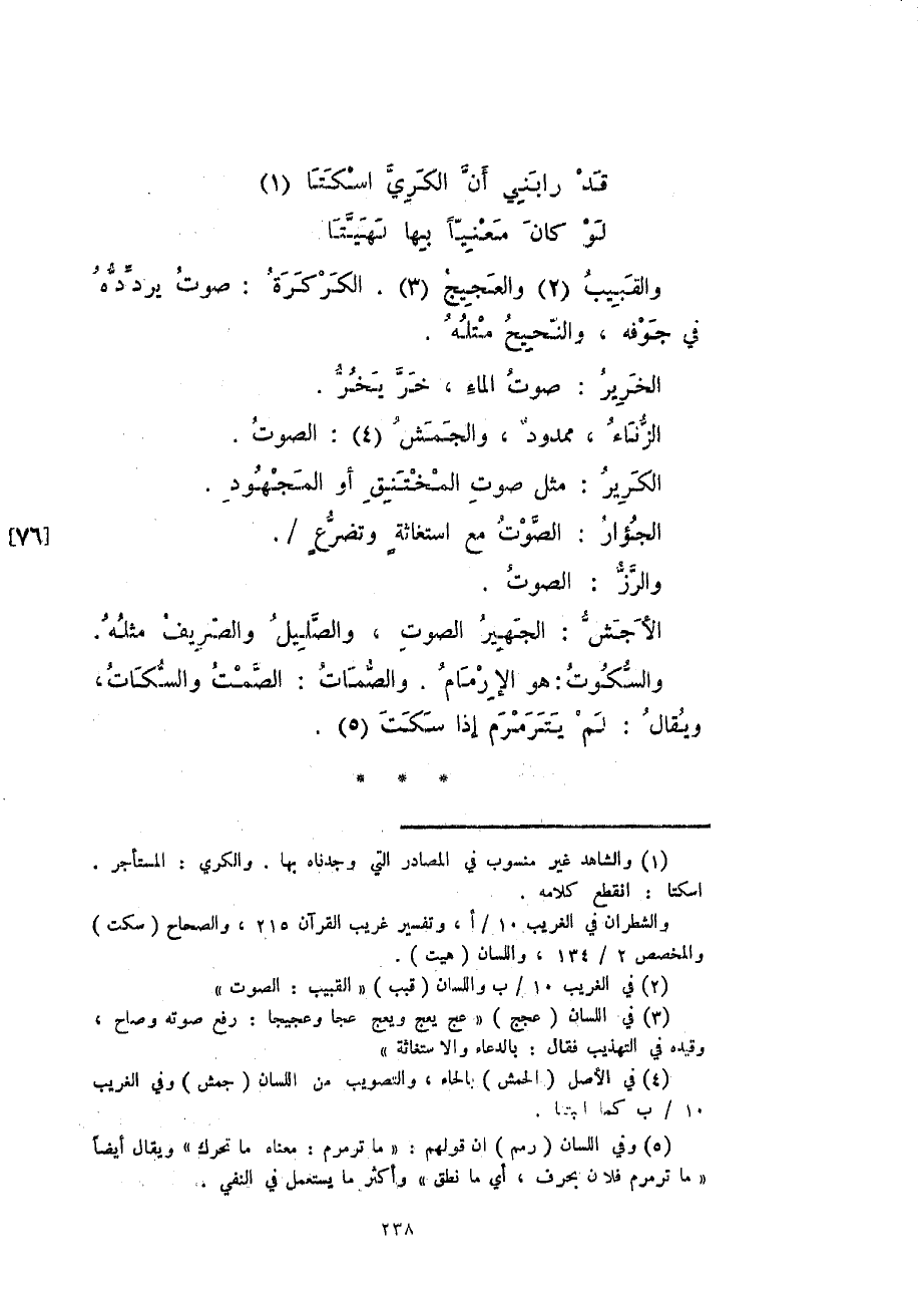والقبيب والعجيج. الكركرة: صوت يردده في جوفه، والنحيح مثله.