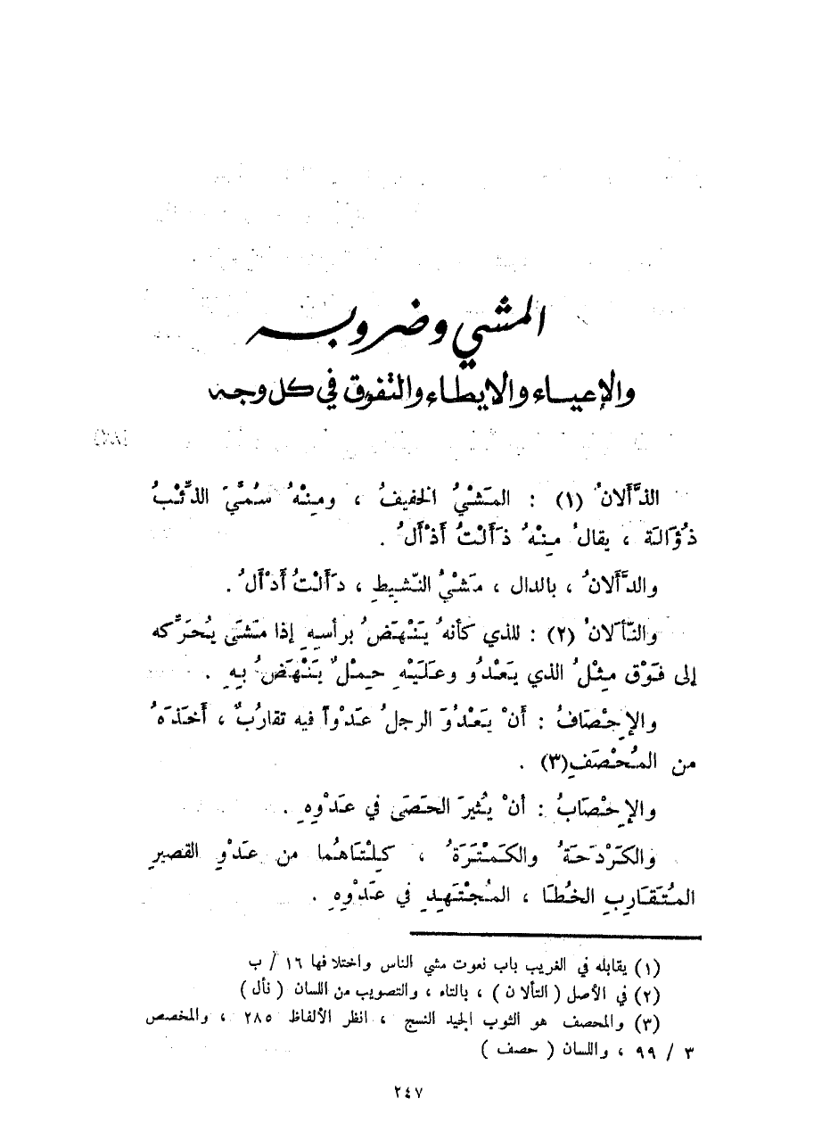 المشي وضروبه والإعياء والإيطاء والتفوق في كل وجه