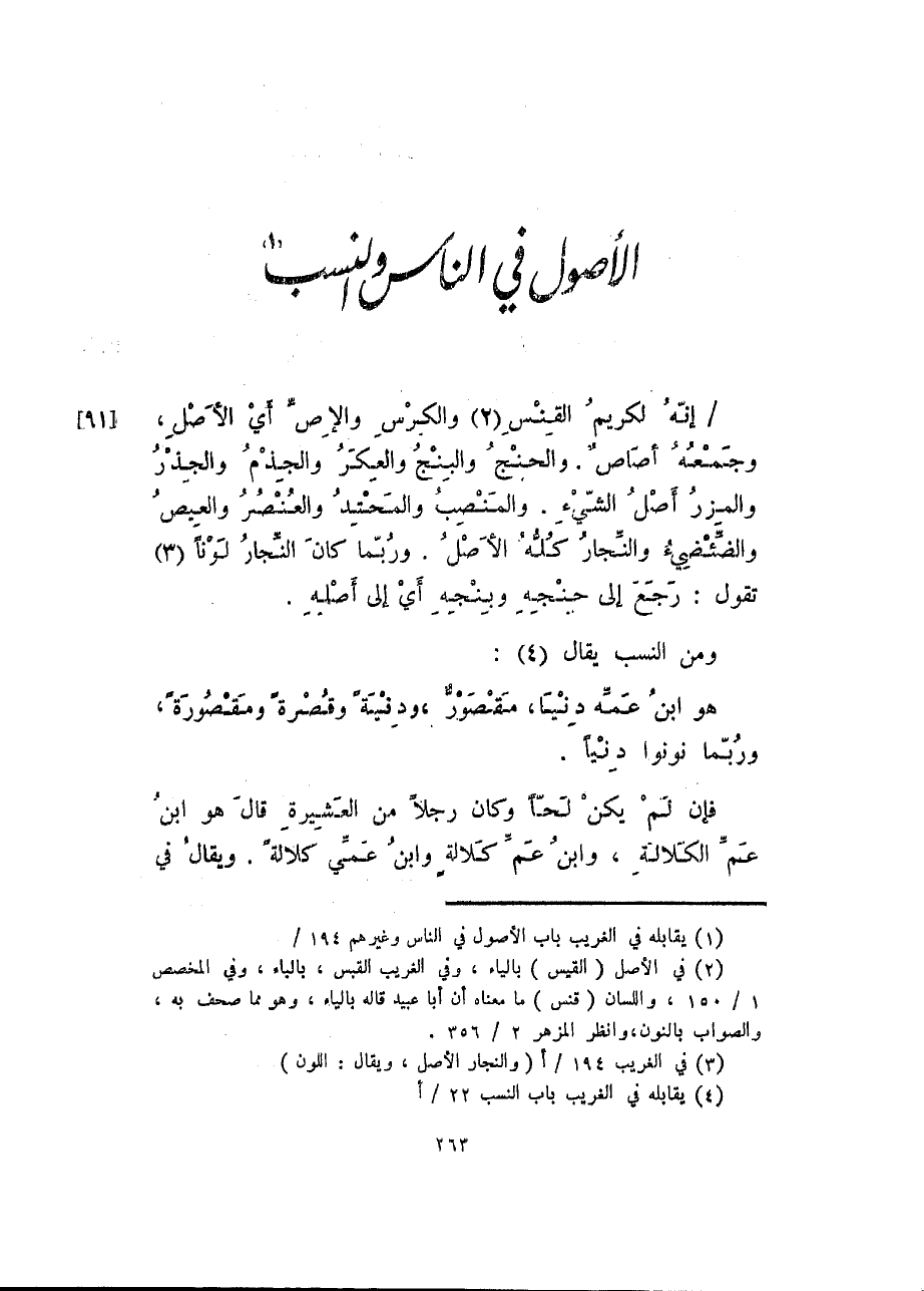 الأصول في الناس والنسب