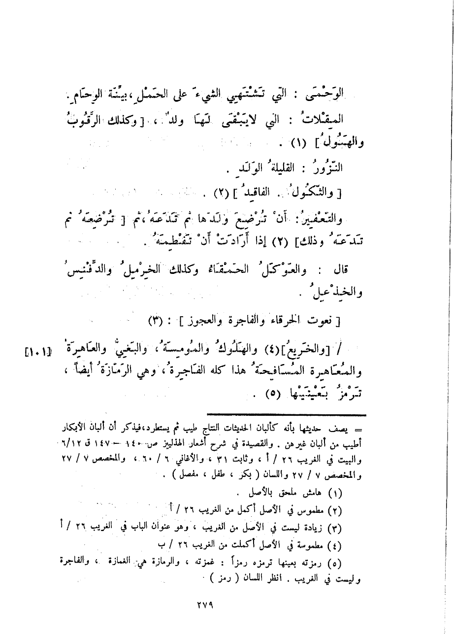 نعوت الخرقاء والفاجرة والعجوز: والخريع والهلوك والمومسة، والبغيّ والعاهرة والمعاهرة المسافحة هذا كله الفاجرة، وهي الرمازة أيضاً، ترمز بعينيها.