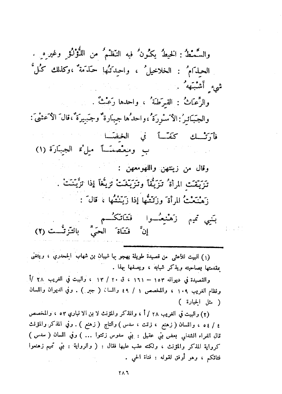 فأرتك كفّاً في الخضا ... بِ ومعصماً ملءَ الجبارةِ