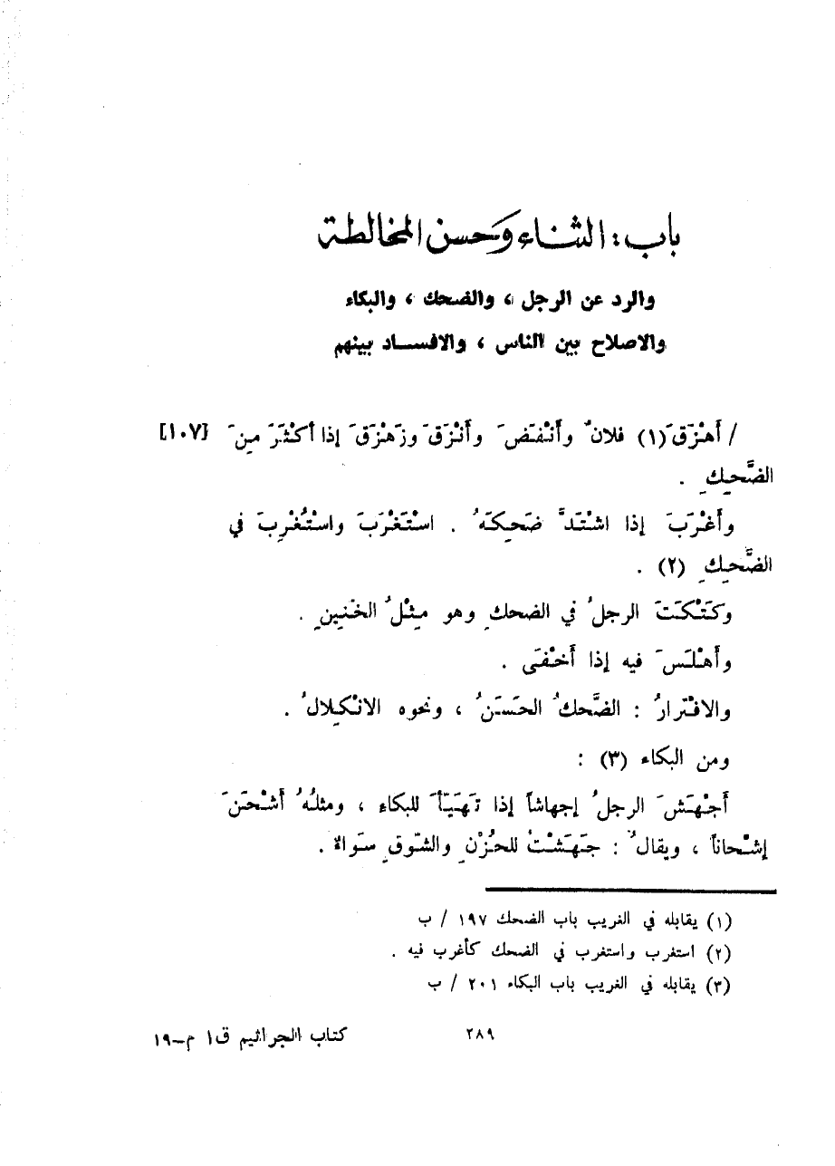 باب الثناء وحسن المخالطة والرد عن الرجل، والضحك، والبكاء والإصلاح بين الناس، والإفساد بينهم