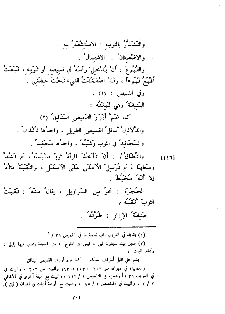 وفي القميص: البنيقة وهي لبنته: كما ضم أزرار القميص البنائق والذّلاذل أسافل القميص الطويل، واحدها ذلذلٌ.