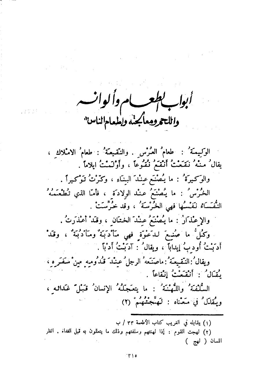 أبواب الطعام وألوانه واللحم ومعالجته وإطعام الناس