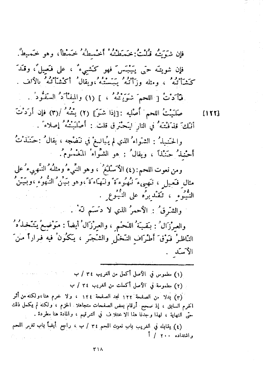 ومن نعوت اللحم: الأسلغ، وهو النيء ومثله النهيء على مثال فعيلٍ، نهئ نهوءةً ونهاءةً، وهو بين النهوء، وبيّن النيوء، تقديره على النّيوع.