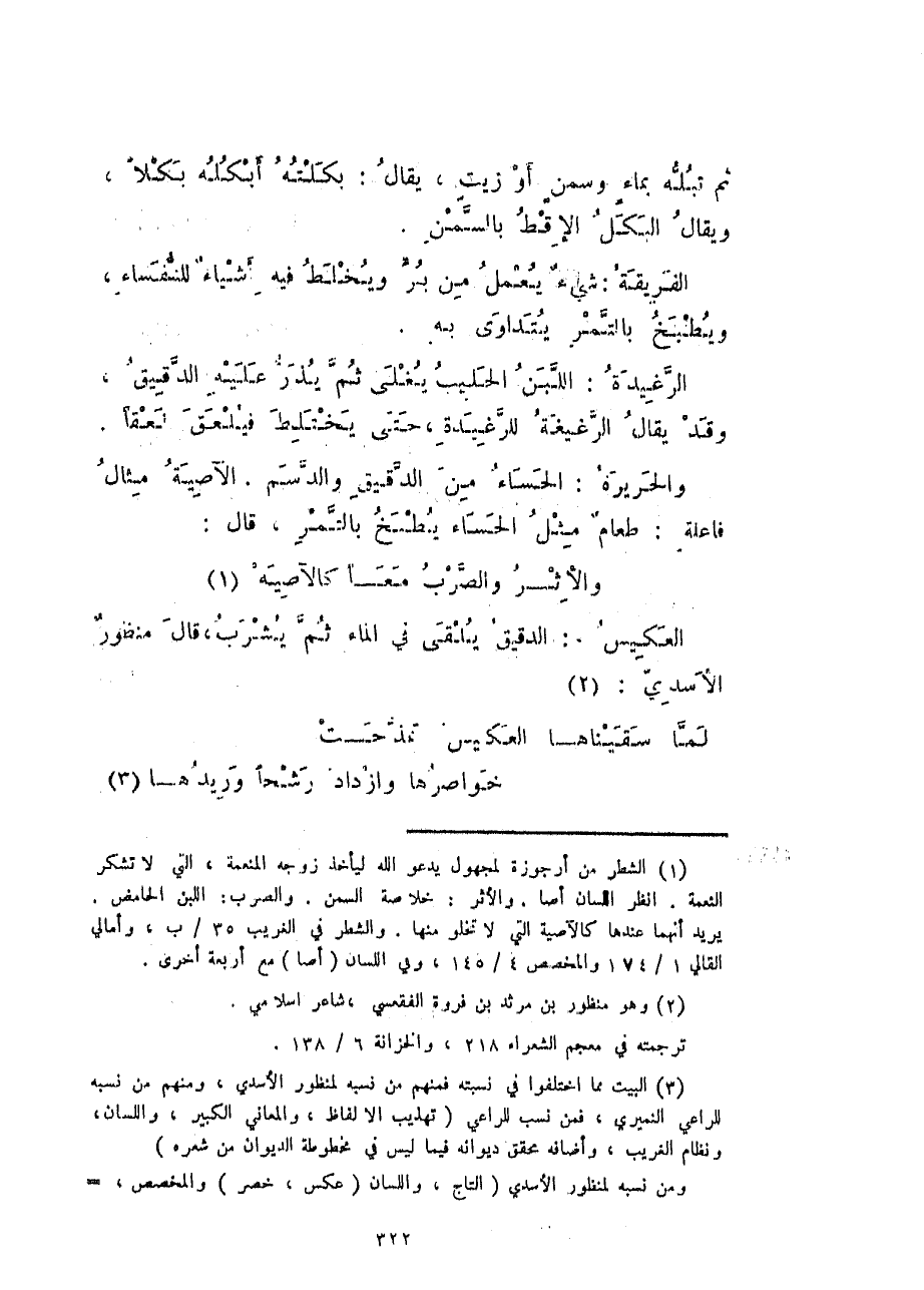 والحريرة: الحساء من الدقيق والدسم. الآصية مثال فاعلة: طعامٌ مثل الحساء يطبخ بالتمر، قال: