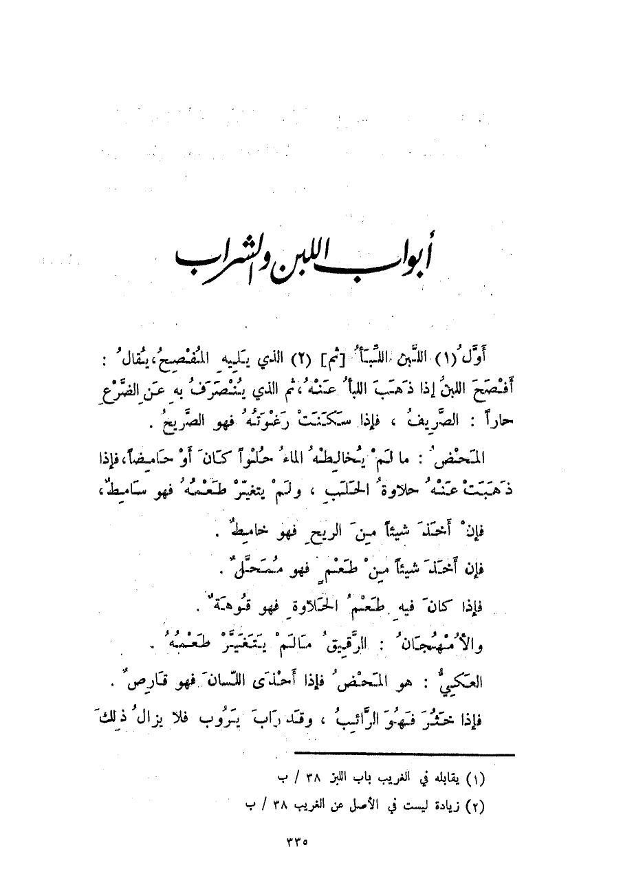 أول اللبن اللبأ ثم الذي يليه المفصح، يقال: أفصح اللبن إذا ذهب اللبأ عنه، ثم الذي ينصرف به عن الضّرع حاراً: الصّريف، فإذا سكنت رغوته فهو الصريح.