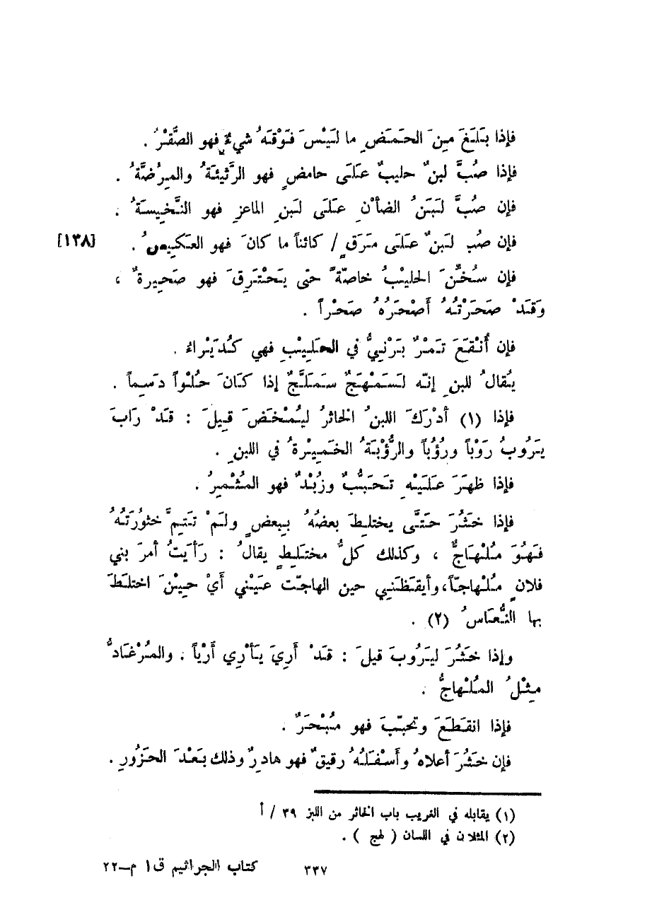 وإذا خثر ليروب قيل: قد أري يأري أرياً. والمرغاد مثل الملهاج.