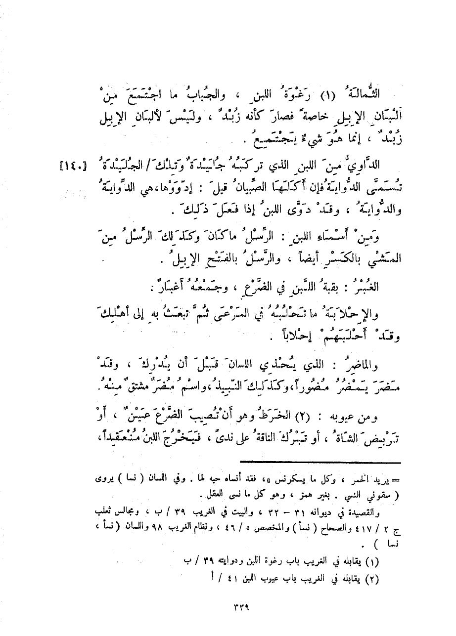 الثّمالة: رغوة اللبن، والجباب ما اجتمع من ألبان الإبل خاصةً فصار كأنه زبدٌ، وليس لألبان الإبل زبدٌ، إنما هو شيءٌ يجتمع.