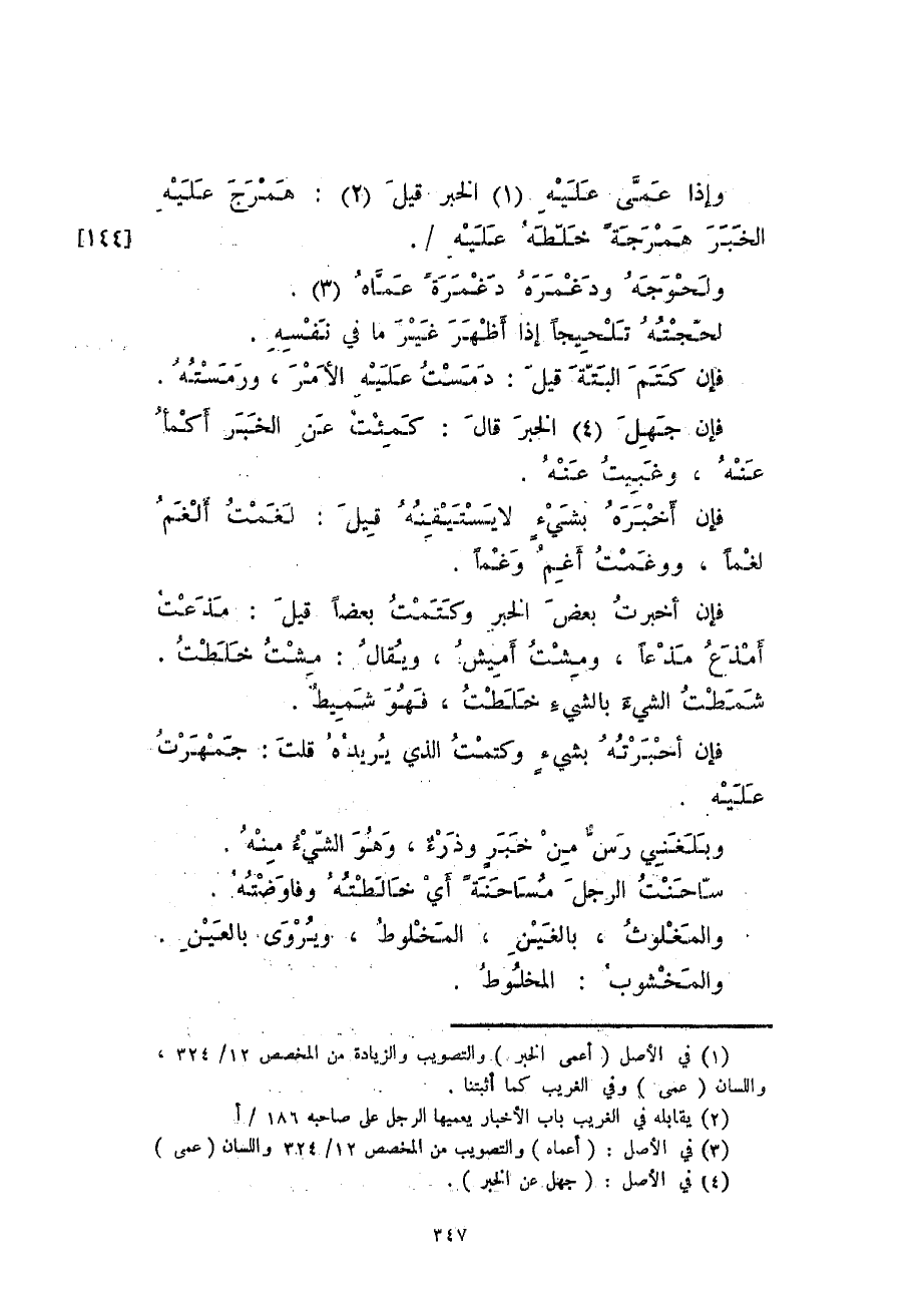 فإن أخبره بشيء لا يستيقنه قيل: لغمت ألغم لغماً، ووغمت أغم وغماً.
