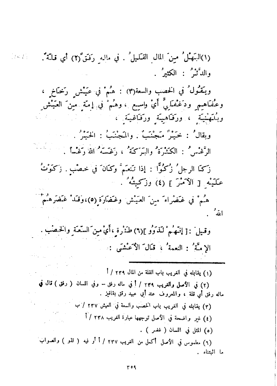 ويقول في الخصب ولسعة: هم في عيشٍ رخاخٍ، وعفاهم ودغفليٍّ أي واسع، وهم في إرمةٍ من العيش وبلهنيةٍ، ورفاهيةٍ ورفاغيةٍ.