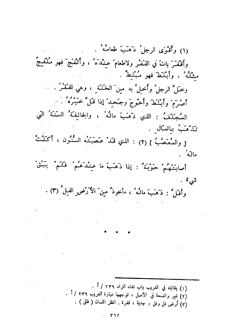 وأفلّ: ذهب ماله، مأخوذٌ من الأرض الفلِّ.