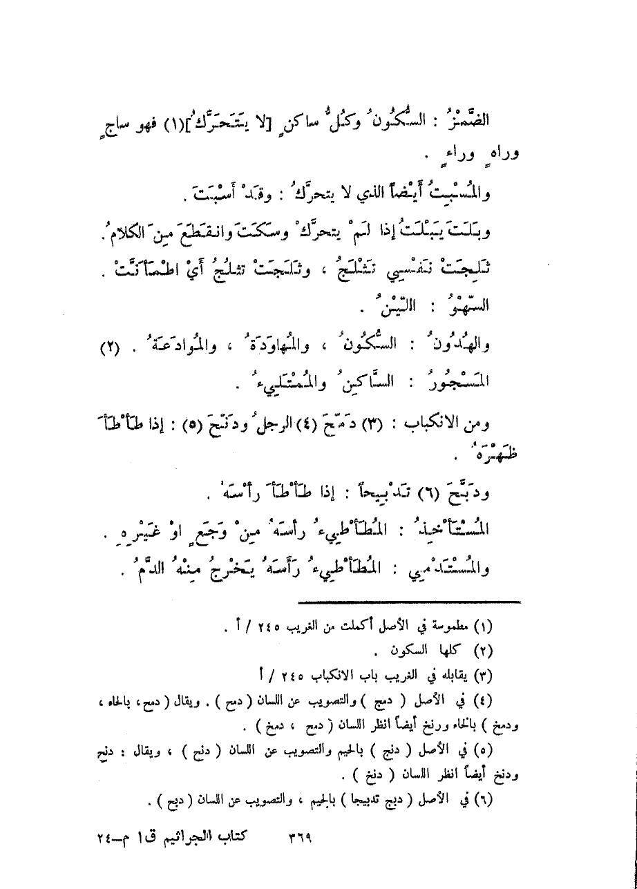 ودبّح تدبيحاً: إذا طأطأ رأسه.