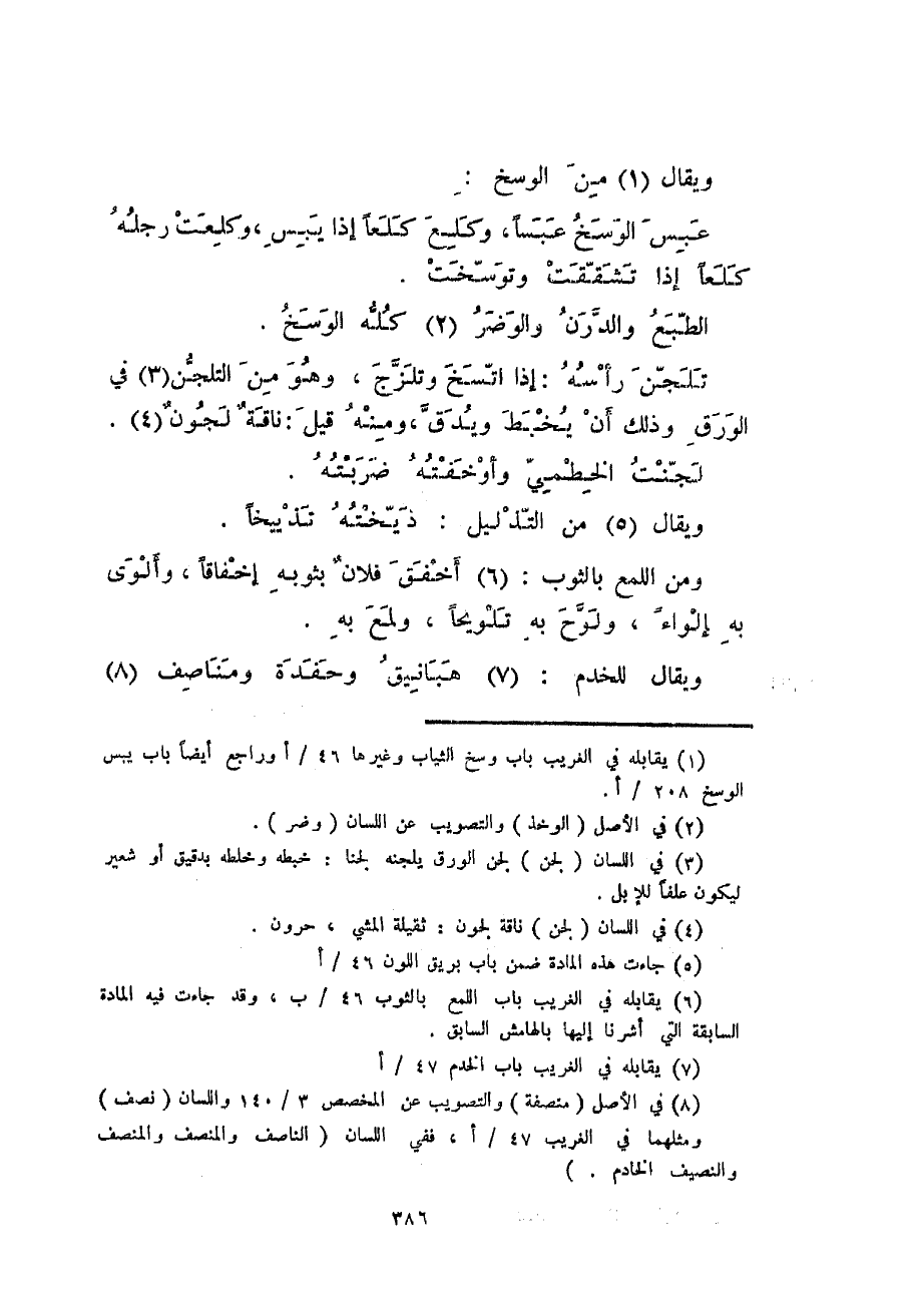 تلجّن رأسه: إذا اتسخ وتلزّج، وهو من التلجّن في الورق وذلك أن يخبط ويدق، ومنه قيل: ناقةٌ لجونٌ.