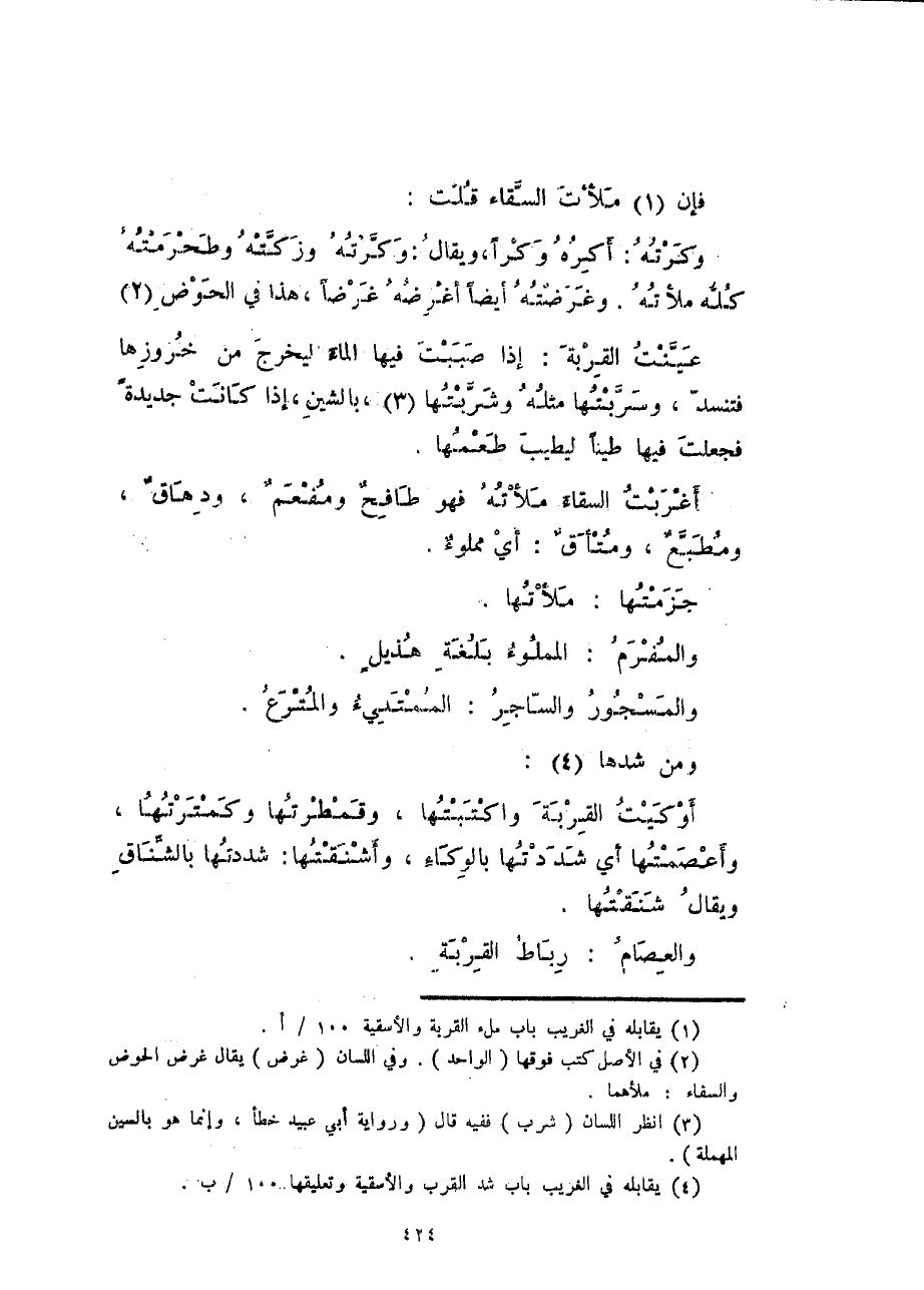 ومن شدها: أوكيت القربة واكتبتها، وقمطرتها وكمترتها، وأعصمتها أي شددتها بالوكاء، وأشنقتها: شددتها بالشناق ويقال شنقتها.