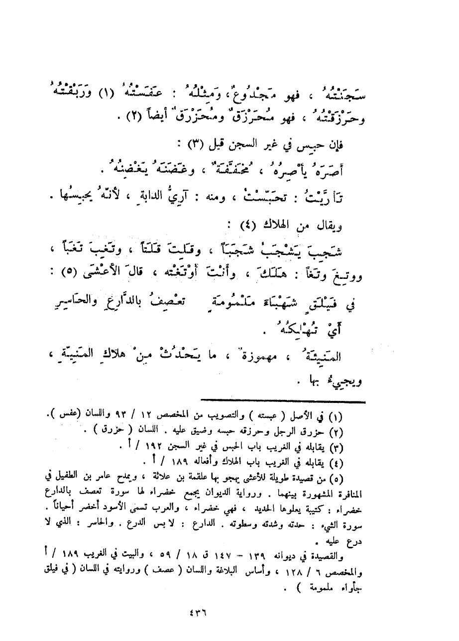 فإن حبس في غير السجن قيل: أصره يأصره، مخفّفةٌ، وغضنه يغضنه.