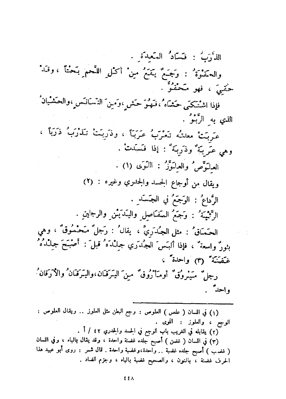 والحقوة: وجعٌ يقع من أكل اللحم بحتاً، وقد حقي، فهو محفوٌّ.
