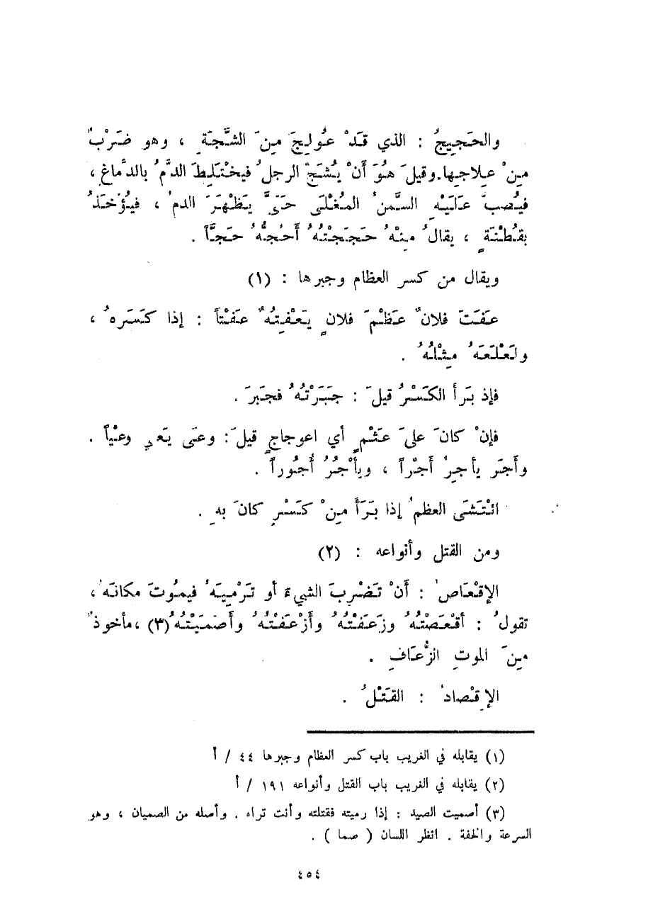 ومن القتل وأنواعه: الإقعاص: أن تضرب الشيء أو ترميه فيموت مكانه، تقول: أقعصته وزعفته وأزعفته وأصميته، مأخوذٌ من الموت الزّعاف.