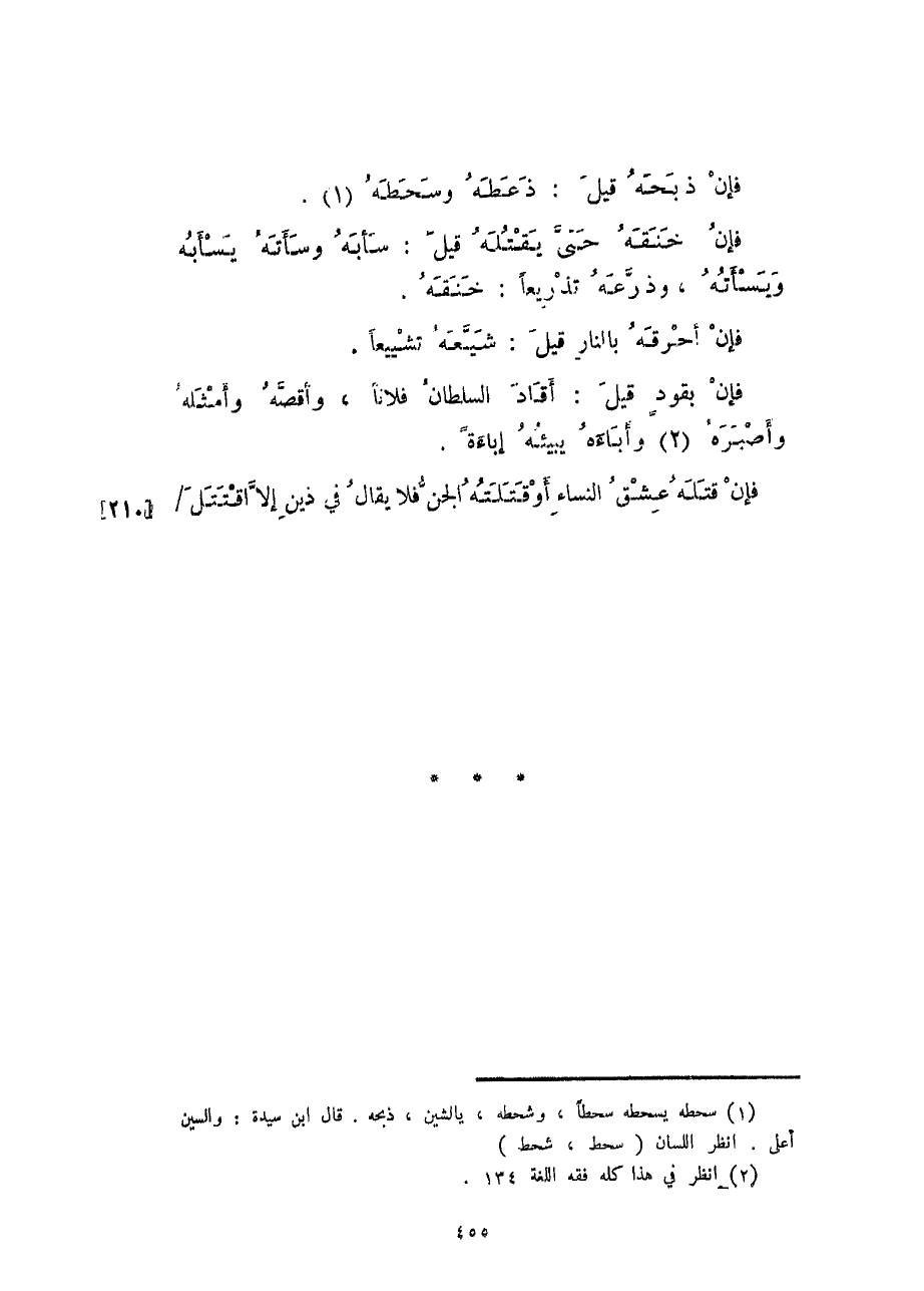فإن بقودٍ قيل: أقاد السلطان فلاناً، وأقصه وأمثله واصبره واباءه يبيئه إباءةً.