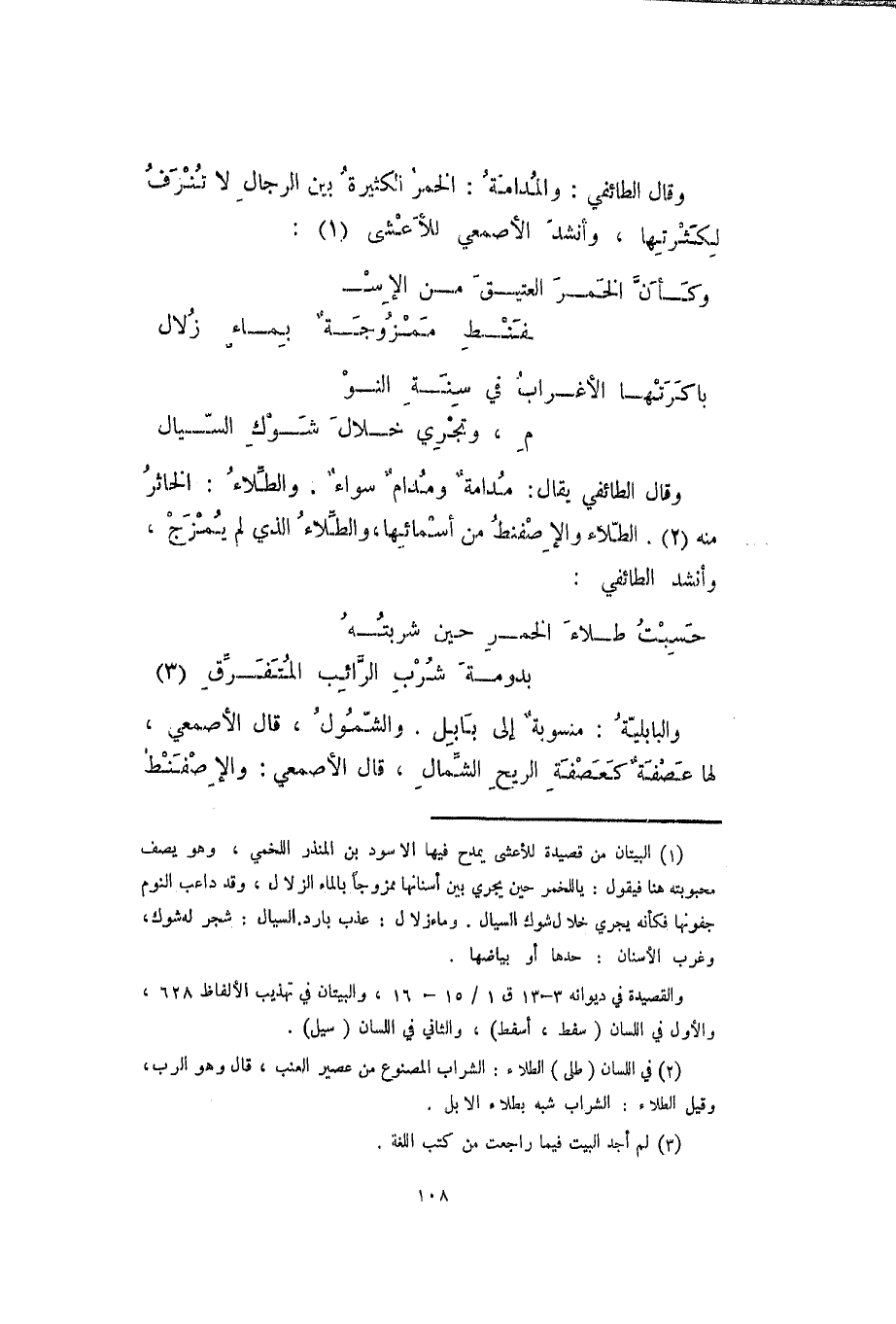 وقال الطائفي: والمدامة: الخمر الكثيرة بين الرجال لا تنزف لكثرتها، وأنشد الصمعي للأعشى: