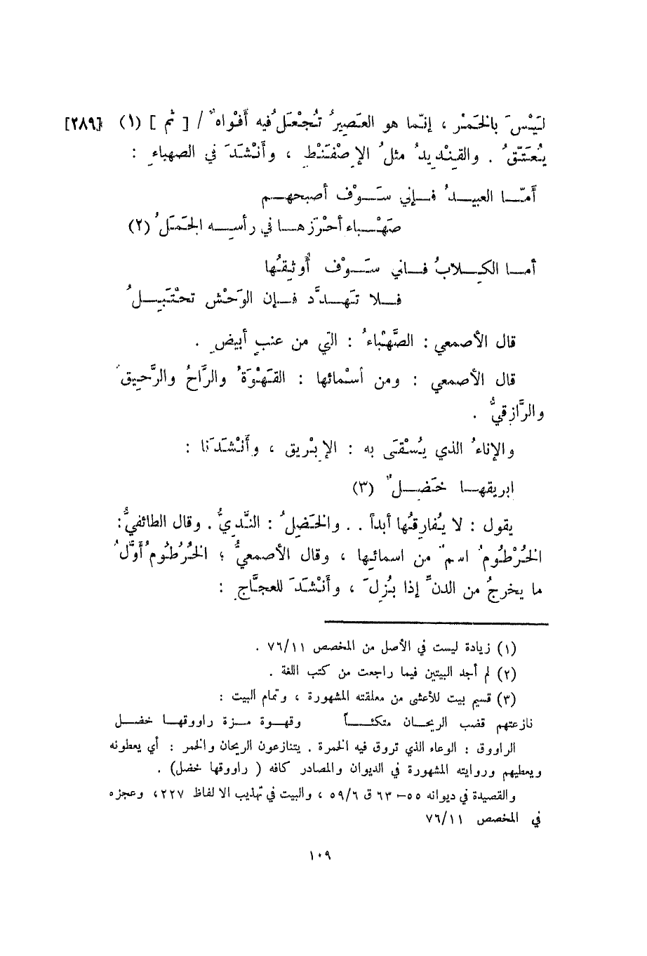 قال الأصمعي: ومن أسمائها: القهوة والراح والرحيق والرازقي.
