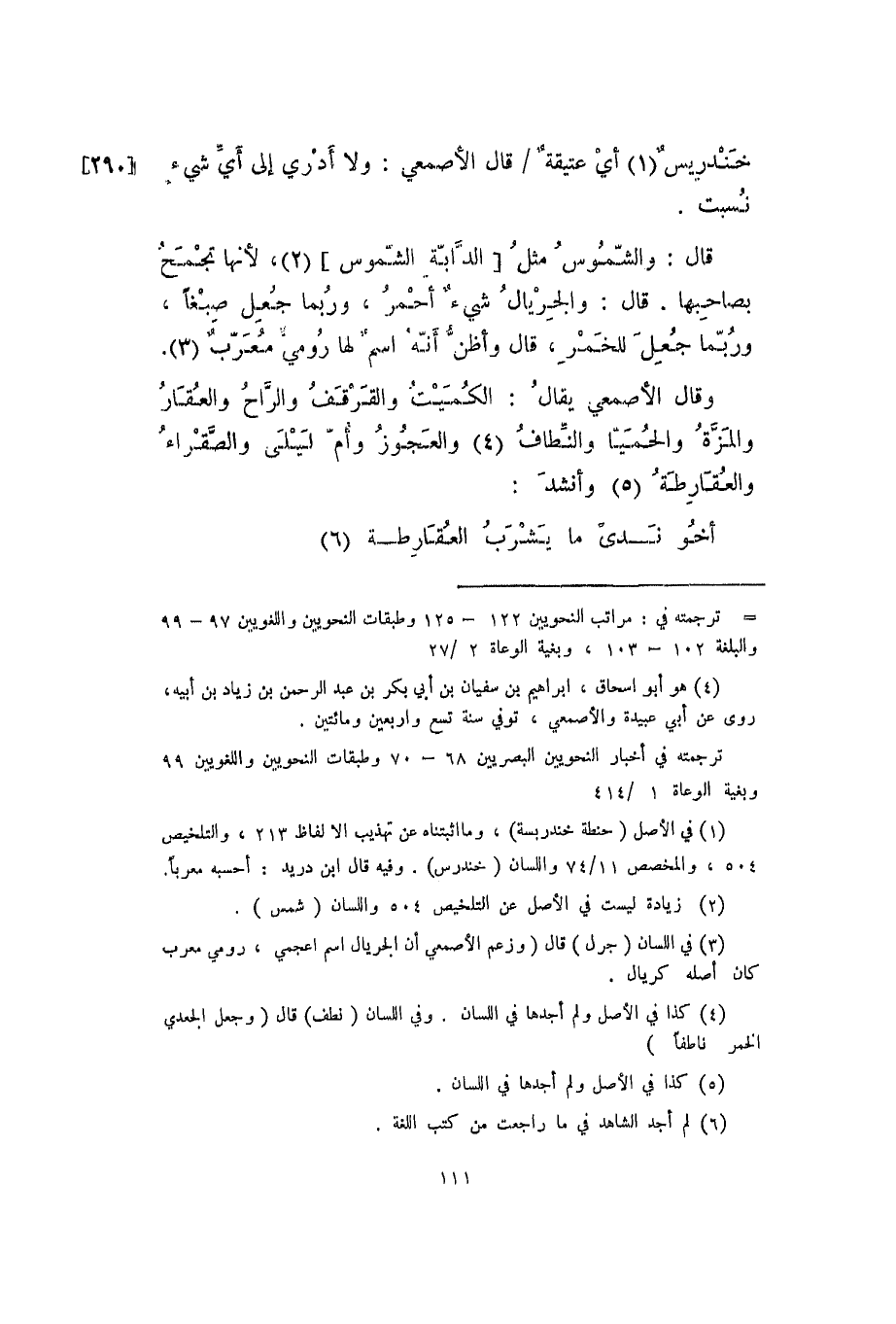 خندريس أي عتيقة. قال الأصمعي: لا أدري إلى أي شيء نسبت.