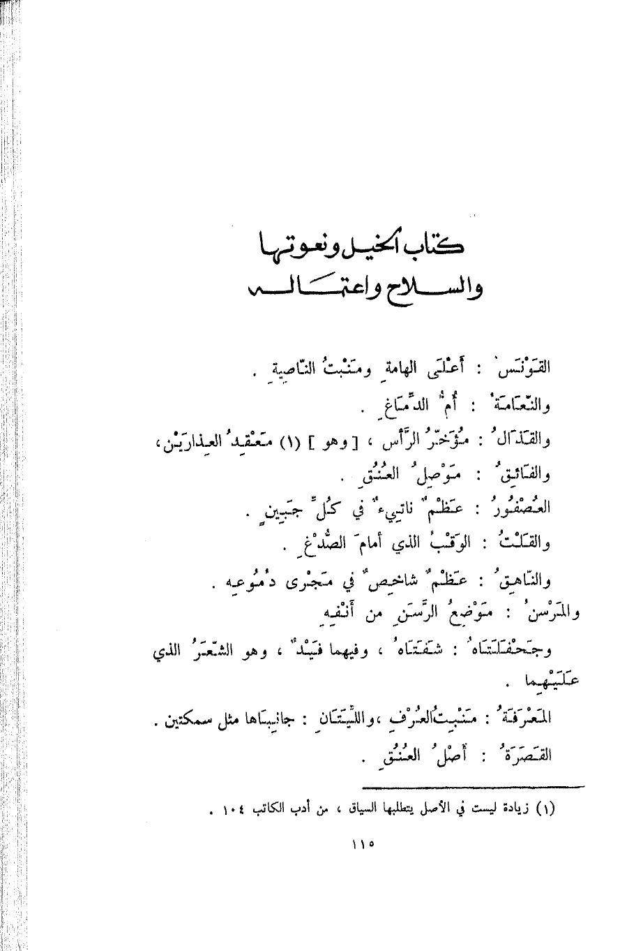 المعرفة: منبت العرف، والليتان: جانباها مثل سمكتين.