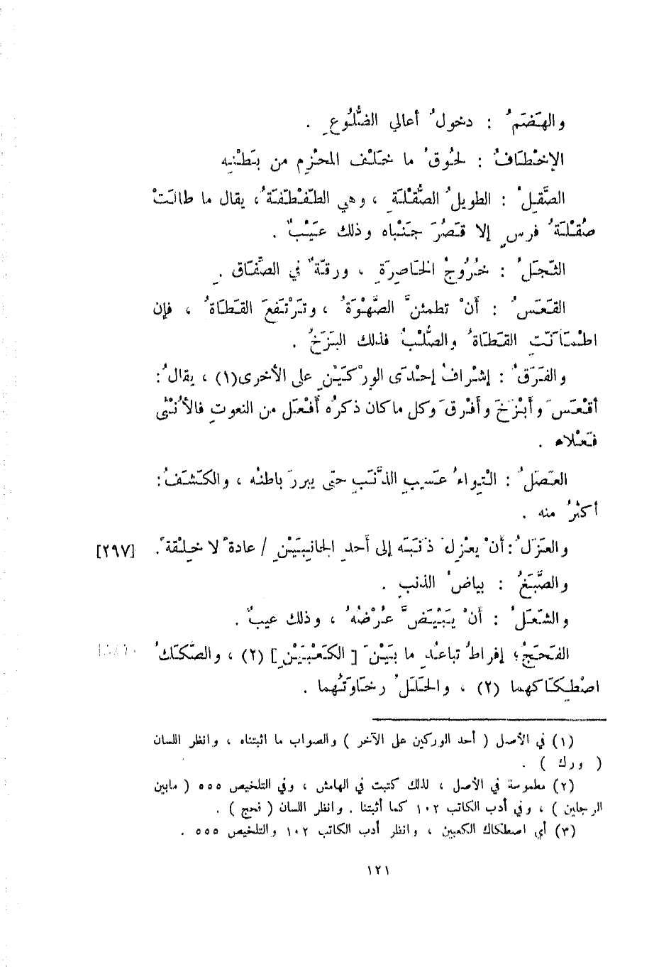 العصل: التواء عسيب الذنب حتى يبرز باطنه، والكشف: أكثر منه.