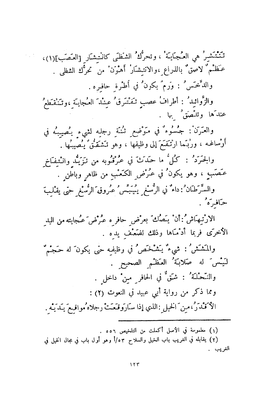 والجرد: كل ما حدث في عرقوبه من تزيسد وانتفاخ عصب، وهو يكون في عرض الكعب من ظاهر وباطن.